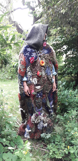 My daughter made this cloak for me, it took her a year and she felt it represented my inner nature, as in Nature/Earth/Gaia. I use it for ritual and ceremony but I do not need to wear it to feel the Mother protecting, guiding, having fun with, weeping, laughing, sleeping, feeling joy and sadness, and honestly, the hard work that goes into living with an Ecoself. Up until now I never knew there was an actual name for how I lived my life, so I feel uncomfortable using the word Ecoself. It is just how I roll as they say.